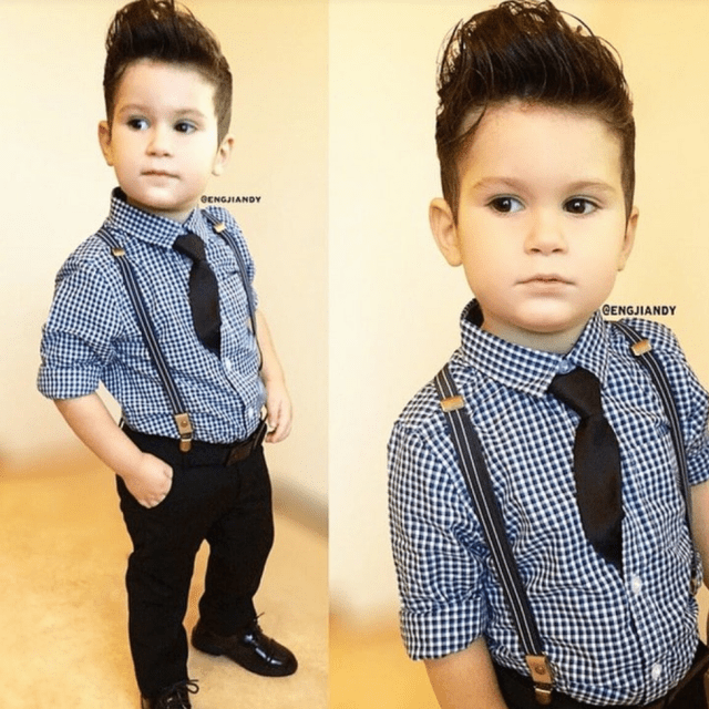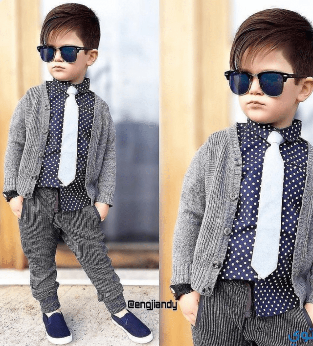 لوك كاجوال للأطفال وه لوك مكون من قميص مصنوع من القماش الجينز باللون الأزرق الفاتح وعليه جيب قصيرة مصنوعة من القماش القطن فى الجينز باللون الأزرق الداكن